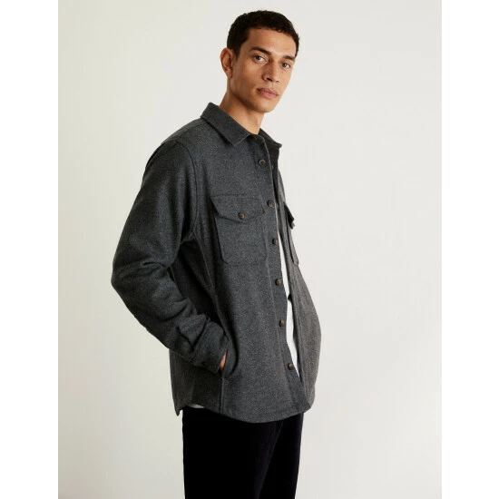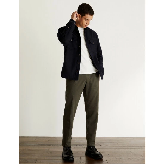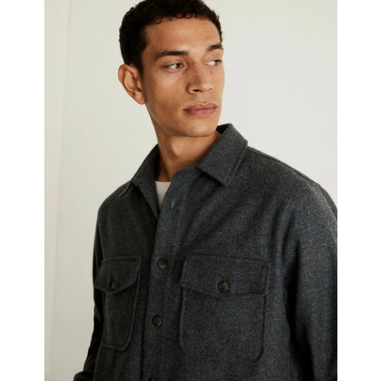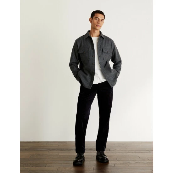 This Jaeger overshirt is crafted from a luxurious wool-rich cloth made by Italian mill Robertex. It’s designed in a regular fit for effortless style, with a smart collar and branded single-buttoned cuffs and fastenings. Patch pockets to the chest and side give this piece a casual feel that’s made for layering, while a pure cotton lining ensures all-day comfort. Wear it over a fresh white t-shirt and chino trousers for an easy work or weekend look.