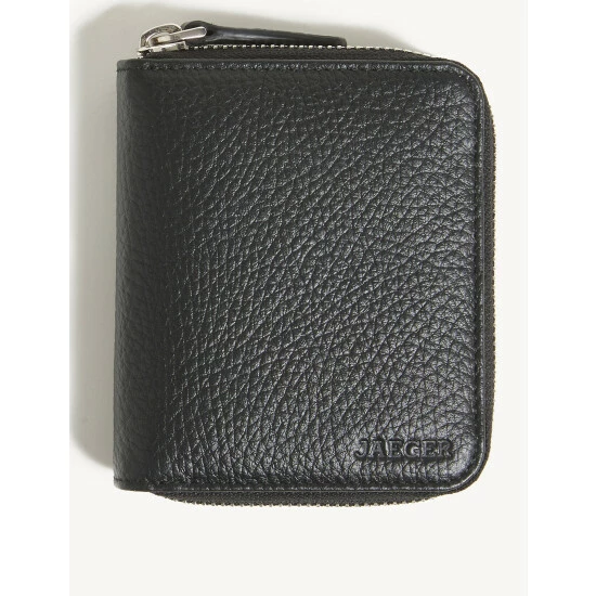Keep your money safely stowed in this secure zipped wallet from Jaeger. It’s made from soft grain leather for a premium look and feel. Inside are slots for cards and cash, as well as a pouch for coins. Made with responsibly sourced leather.