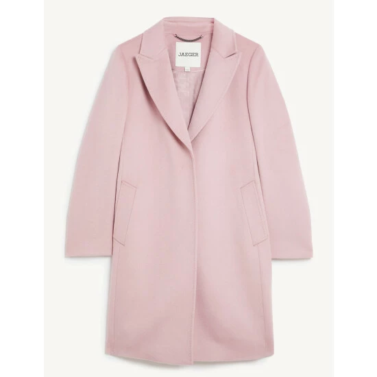 Pure wool fabric gives this Jaeger coat a subtle lustre and indulgently smooth feel. The smart A-line style comes in a regular fit, with a neatly tailored lapel neckline. Three buttons through the front create a modern look. It’s lined for comfort. Use it to give a formal touch to denim and t-shirts.