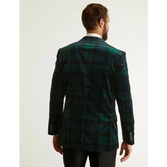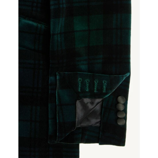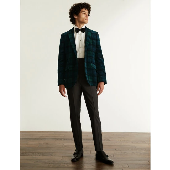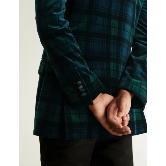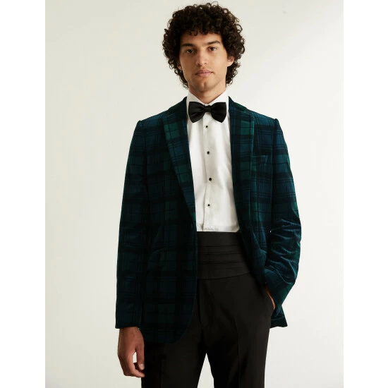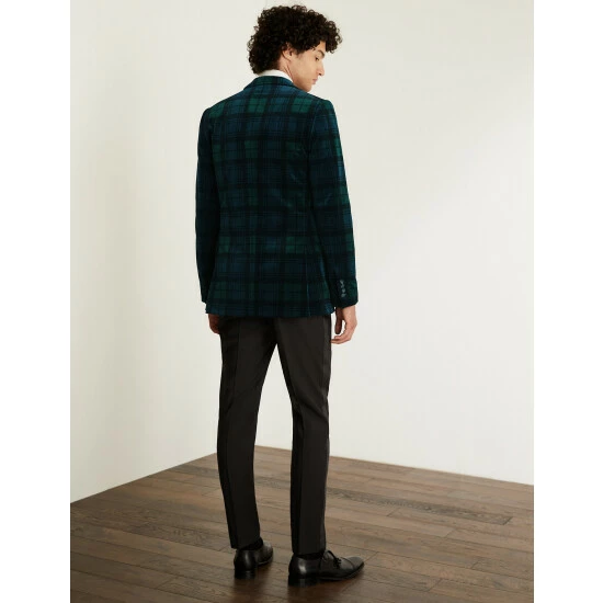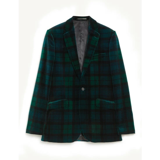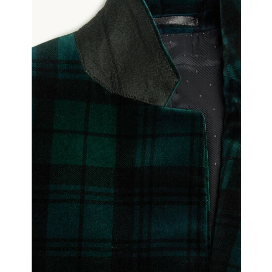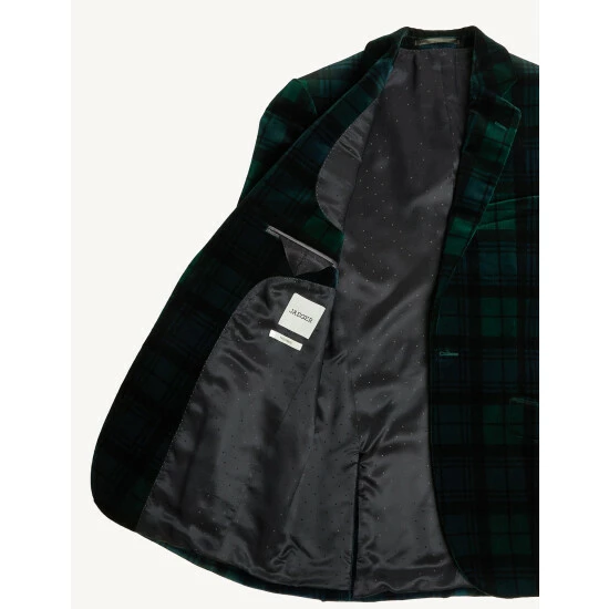 Add extra flair to event looks with this statement velvet check jacket from Jaeger. This single-breasted style is crafted from pure cotton fabric made by Italian mill Pontoglio, using a lightweight half-canvas construction that moulds elegantly to the torso. It features classic details including lapels and a top pocket, plus premium satin-covered buttons on the working cuffs. This jacket is finished with a polka dot jacquard lining for comfort and an extra pop of print. Style this piece with plain trousers to let its stand-out pattern take centre stage.