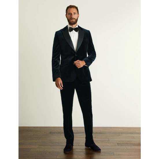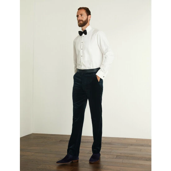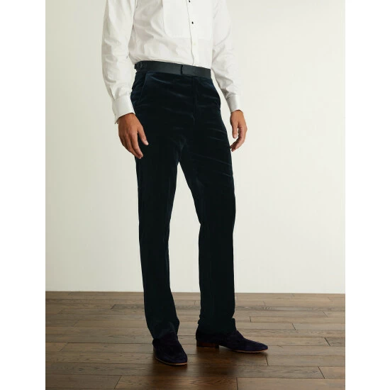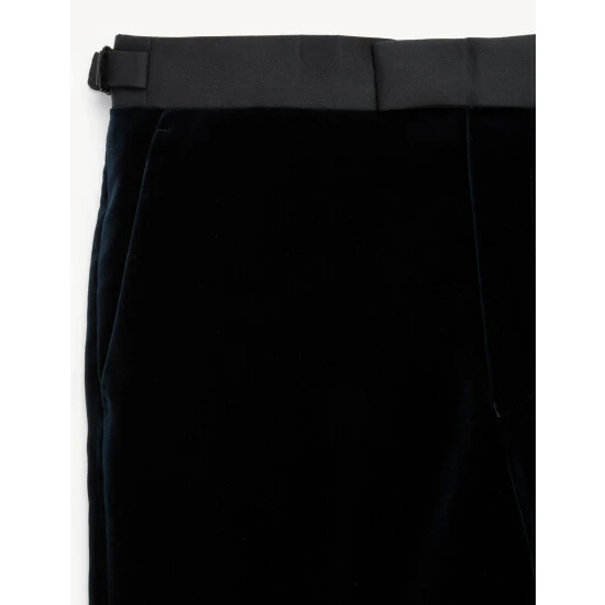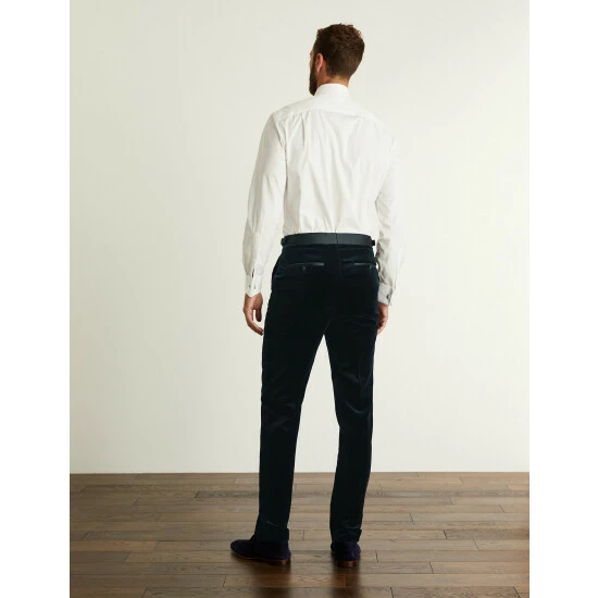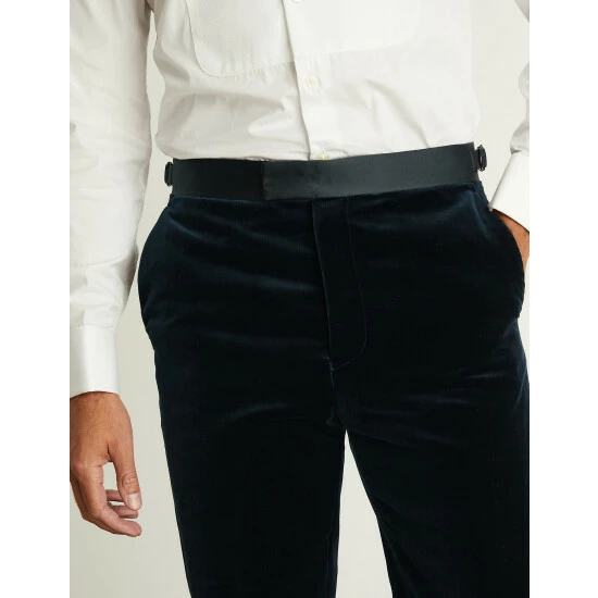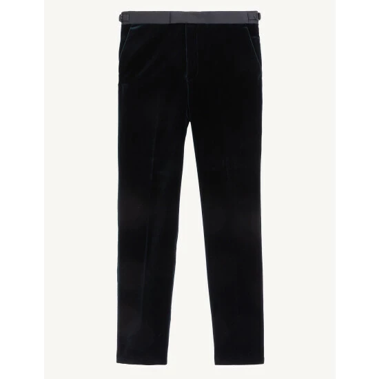 Embrace a luxe approach to formalwear with these pure cotton velvet trousers from Jaeger, crafted from premium cloth made by Italian mill Pontoglio. They’re designed in a sharp tailored shape with a flat front, comfortable mid-rise waist and a slightly tapered leg for a contemporary feel. Side adjusters ensure your ideal fit, while jetted pockets, a concealed coin pocket and satin tape down the sides add the final details. Wear with the brand’s matching jacket for an entrance-making occasion look.