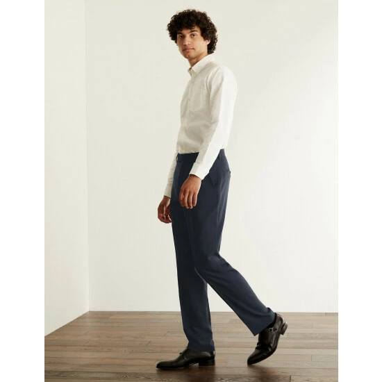 - Product Style: Flat front, Fit: Tailored fit, Fastening: Hook bar and zip fastening, Lined, Trouser Style: Flat front