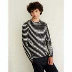 JAEGER Pure Cotton Breton Striped Long Sleeve Top Men Rust